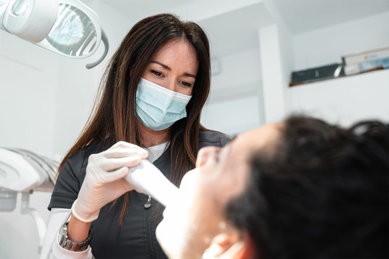 Odontologa en Clinica Dental Cervera Cubino Explicando a un Paciente
